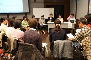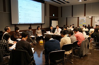 子どもの発達支援を考えるSTの会 主催 子どもの発達支援を考えるSTの会 2016名古屋研修会 ※終了しました <ご案内> 今年度の名古屋での研修会では「多職種との連携」をテーマに、『みんなの悩み、みんなで支え合おう!〜職場や地域、職種をこえて手を取り合って〜』というスローガンをタイトルにしました。初めての試みとして、会員以外の方も全プログラムにご参加いただけます。 共に子どもの発達支援について考えてみませんか?ST以外の職種の方、学生の方もお待ちしております。 ○テーマ 『みんなの悩み、みんなで支え合おう!』 〜職場や地域、職種をこえて手を取り合って〜 ○会 場 愛知県名古屋市 ウインクあいち ○開催日 2016年12月3日(土) 12月4日(日) ○日 程 1日目:12月3日(土) 13:30 開場・受付 14:00 講演 「職種をこえた連携の取組と感覚統合」 NPO法人はびりすによるTED形式のチームプレゼンテーションとOT山口清明氏による感覚統合についての講演 16:30 終了予定 2日目:12月4日(土) 9:30 開場・受付 9:45 グループトーク 12:00 ランチョンセミナー 「訓練と支援に代わることば」 講師:代表 中川信子氏 13:15 ポスターセッション 14:30 グループトーク報告会 15:40 閉会予定 当日の様子 1日目 13:30 開場・受付 中川代表による開会あいさつ 14:00 講演スタート TED形式のチームプレゼン 講師:NPO法人はびりす 作業療法士 山口清明 氏 一日目はポスターを掲示 NPO法人はびりすスタッフ、名古屋実行委員会、運営委員記念撮影 2日目 名古屋駅前の銀杏 9:00-12:00 グループトーク グループトークのテーマは7つ (1)保育園幼稚園・学校との連携・支援 (2)特別支援学校とST等の関わり (3)多職種との連携 (4)保護者支援 (5)子どもの育ちを促す地域保健の役割 (6)発達障害 (7)放課後等デイ 企業展示 12:00 ランチョンセミナー 「訓練と支援に代わることば」 講師:中川信子代表 ポスター発表 8名の方からポスターでの発表がありました 14:30 グループトーク報告会 中川代表より閉会のご挨拶 名古屋実行委員長の原氏より閉会のご挨拶 来年は徳島県で開催します ◆研修会のリーフレットはこちらから(PDFファイル)◆
