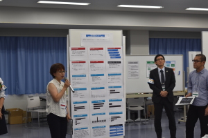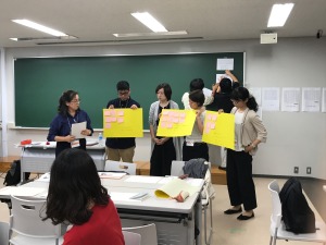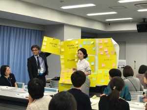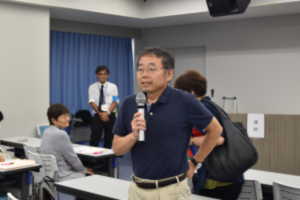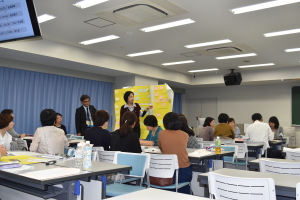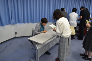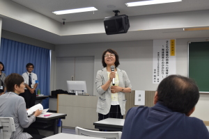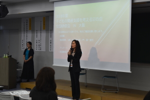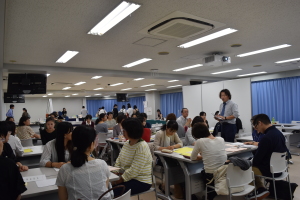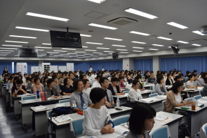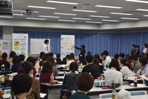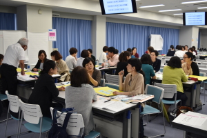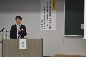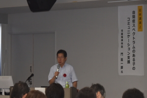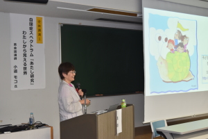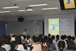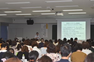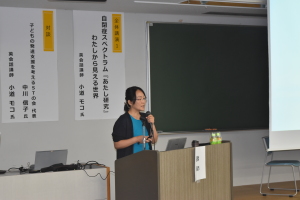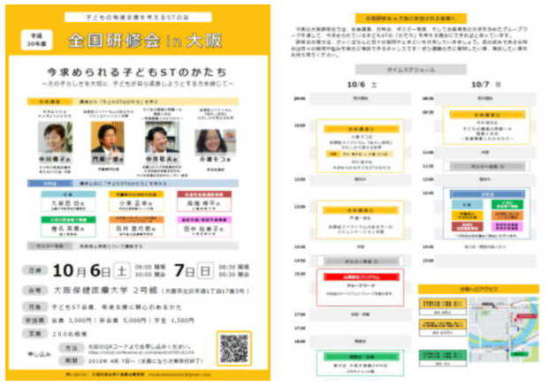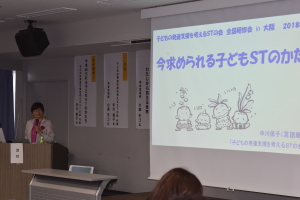 子どもの発達支援を考えるSTの会 主催 子どもの発達支援を考えるSTの会 2018大阪研修会 (更新:2018.12.25) ★「大阪研修会実行委員長より」 ★「研修会概要」へ ★「当日の様子」へ 大阪研修会実行委員長より (研修会終了にあたり) 台風が近づいているということで、キャンセルをされた方もいらっしゃったのですが、当日は230名ほどの皆さんにご参加いただき、大変盛り上がった研修会でした。 小道モコさんの講演に始まり、中川代表との対談、その後は、中川代表による「これからの子どもSTに必要なこと」というテーマでの講演でした。 小道さんの講演では、これまで私たち支援者が実感することが難しい当事者の視点をわかりやすくお話しいただき、まさに「目からうろこ!」の内容でした。お話しを伺いながら、「そういうことだったのか!」と気づかされることばかりでした。 今後の支援に役に立つことお話しで、お呼びして本当に良かったと思っています。 その後の対談では、私たちが日頃気になっていることを中川代表より質問していただきました。 対談後の中川代表による講演では、今回の研修会テーマである「今求められる子どもSTのかたち」についてお話しいただきました。その中で、相手の成長にはST自身が自分の在り方を振り返る姿勢が必要だということばに気が引き締まる思いでした。 お二人とも、声のトーンやスピードが柔らかくて、とても聞きやすく、どこか似ている感じがしました。 小道さんにはご講演後、サインまで応じていただきました! 午後からの門眞一郎先生のご講演では、PECSを使用した事例をご紹介いただき、ビデオの中のお子さんの成長に驚くばかりでした。 もっと言語以外のコミュニケーションにも目を向けるべきだと感じました。 グループワークでは、日頃臨床で感じている疑問を出し合ったことで、最初から最後まで話が尽きず、大変内容の濃い時間となりました。 続いての懇親会では、二日目の講師の先生方にご参加いただき、ひざを突き合わせてじっくりとお話をすることができました。 余興のミュージックケアでは、クラシックからアップテンポの曲に合わせて全員が鳴子と鈴を打ち鳴らしました! 80名もいたのですが、曲に合わせて一糸乱れず打ち鳴らす姿は圧巻でした。 参加者全員の心が一つになったような不思議な感じがしました。 二日目は中井先生に「睡眠がいかに大事か」について様々な科学的根拠をご紹介いただき、大変有意義な時間を過ごすことができました。 1時間半では到底足らない、とても濃い内容でした。 その後の分科会では、グループワークでまとめた質問について講師の先生に丁寧にご回答頂きました。 各テーマ数十名の参加者でしたので、いつもとは違って実質的な内容になったのではないでしょうか。 分科会を終えた皆さんの表情がとても生き生きとしていたので、きっとご満足いただける内容だったのだなと思います。 大阪研修会は講演が多く、時間との闘いで、少し、不完全燃焼感が否めませんが、二日間でたくさんの講演を聞いて頂けて良かったと思います。 閉会の挨拶でもお話しさせていただいたのですが、小道さんは高校の美術の先生からの「あなたでいいんだよ」というメッセージにとても助けられたとお話しされていました。 今回の研修会テーマ「今求められる子どもSTのかたち」は、きっと参加者の皆様がそれぞれこれから見つけていかれることとは思いますが、私なりに、「あなたはあなたでいいよ。 あなたと過ごすこの時間がとっても楽しい」と伝え続けることが子どもさんや保護者の方に少しの元気を与えることができるのかなと感じました。 参加していただいた皆様 お忙しい中、ご参加いただき、また盛り上げていただき、ありがとうございました。 参加できなかった皆様 会報にて研修会の様子をお伝えしますので、楽しみにしていてください。 最後になりましたが、大阪で研修会を開催させていただいて本当に感謝しております。 ありがとうございました。 来年は熊本県宇土市でお会いしましょう! 「ほんま おおきに。 元気でな!」 2018年10月8日 大阪研修会実行委員長 北村 ▲このページのトップへ 【研修会概要】 上記の画像をクリックで、 パンフレット(PDF)ファイルが 別ウインドウで開きます。(約1.1MB) ●テーマ 今求められる子どもSTのかたち 〜その子らしさを大切に、 子どもが自ら成長しようとする力を信じて〜 ●会 場 大阪保健医療大学 (2号館) 住所:〒530-0043 大阪市北区天満1丁目17番3号 ●開催日 ●日 程 10月6日(土) 10時開会 (9時開場) 10月7日(日) 9時半開会 (8時半開場) 1日目:10月6日(土) ・9:00 開場・受付 ・10:00 開会挨拶 ・10:00-12:00 講演(1) (1)英会話講師 小道 モコ 氏 「自閉症スペクトラム『あたし研究』わたしから見える世界」 (2)対談:中川 信子 氏 × 小道 モコ 氏 (3)子どもの発達支援を考えるSTの代表 中川 信子 氏 「今求められる子どもS Tのかたち」 ・12:00-13:00 昼休み ・13:00-14:30 講演(2) 児童精神科医 